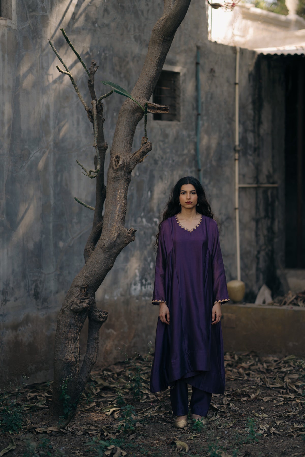 Lilith features a panelled kurta, trousers and dupatta. Kurta and trousers are made in handwoven chanderi silk. Kurta has floral motif aari hand embroidered sleeves hem and V neckline with side pockets. Trousers are straight fit with side pockets. Dupatta is made in organza silk featuring aari embroidered floral border.